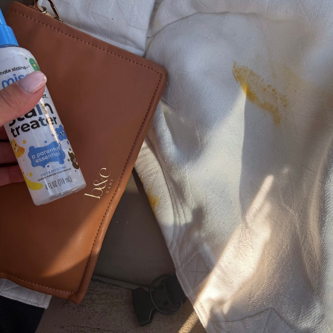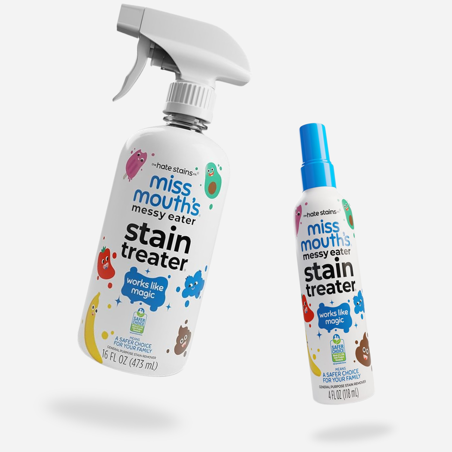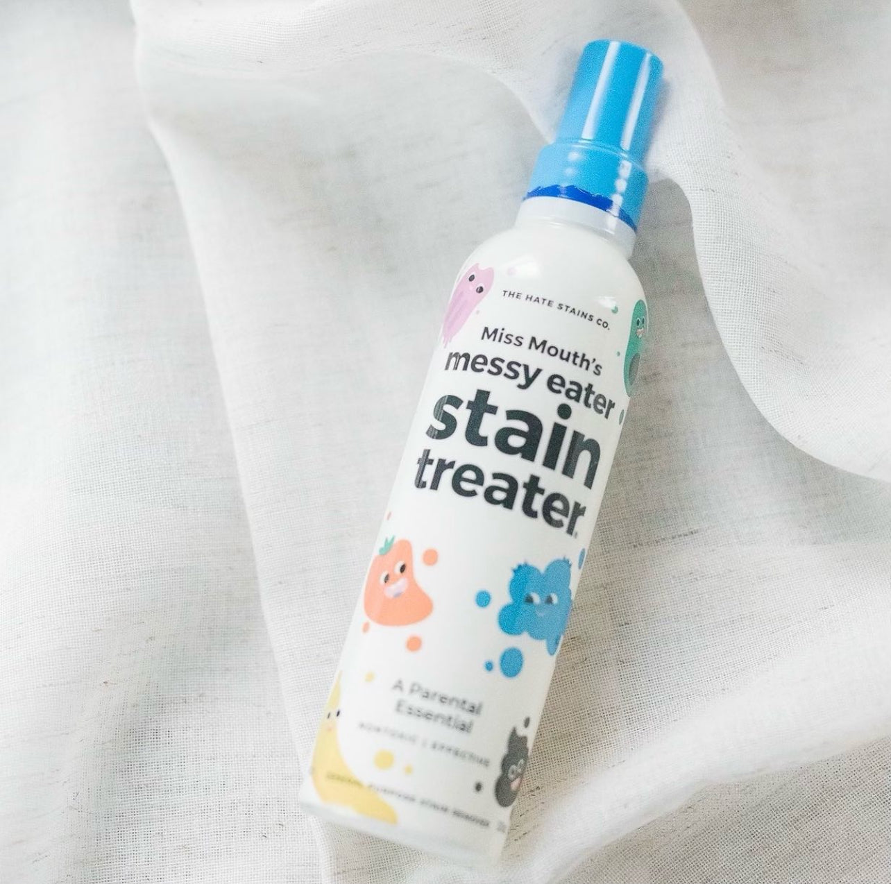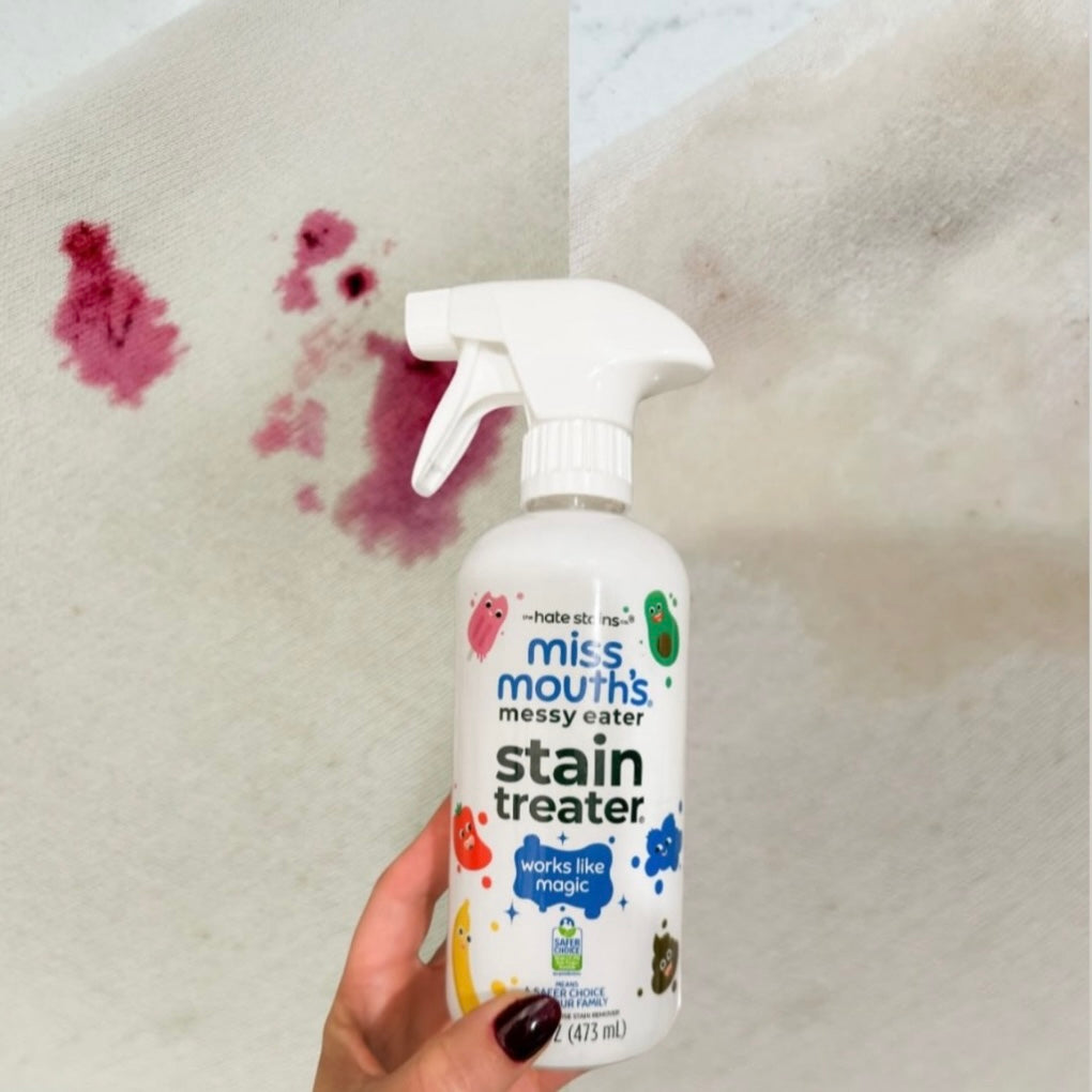 Spray détachant Miss Mouth’s format à emporter sur fond blanc. Produit nettoyant les textiles, il est très efficace pour enlever les taches sur les vêtements et le linge.